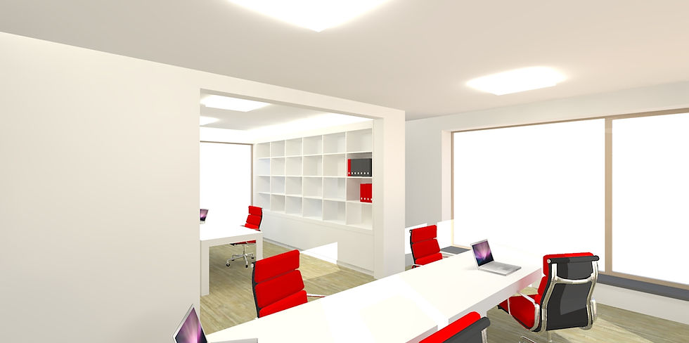 De 1ste en 2de verdieping worden gebruikte als vergader en werkruimte. In de vergader en werkruimte is er gebruik gemaakt van vilten wanden om de akoestiek te verbeteren. Het geheel heeft een strak en sober karakter, met een extra toets die het geheel toch iets losser maakt.